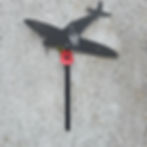 An Acrylic Spitfire Lest We Forget VE DAY 80 on a 12" / 30cm Black Plant Rod.
